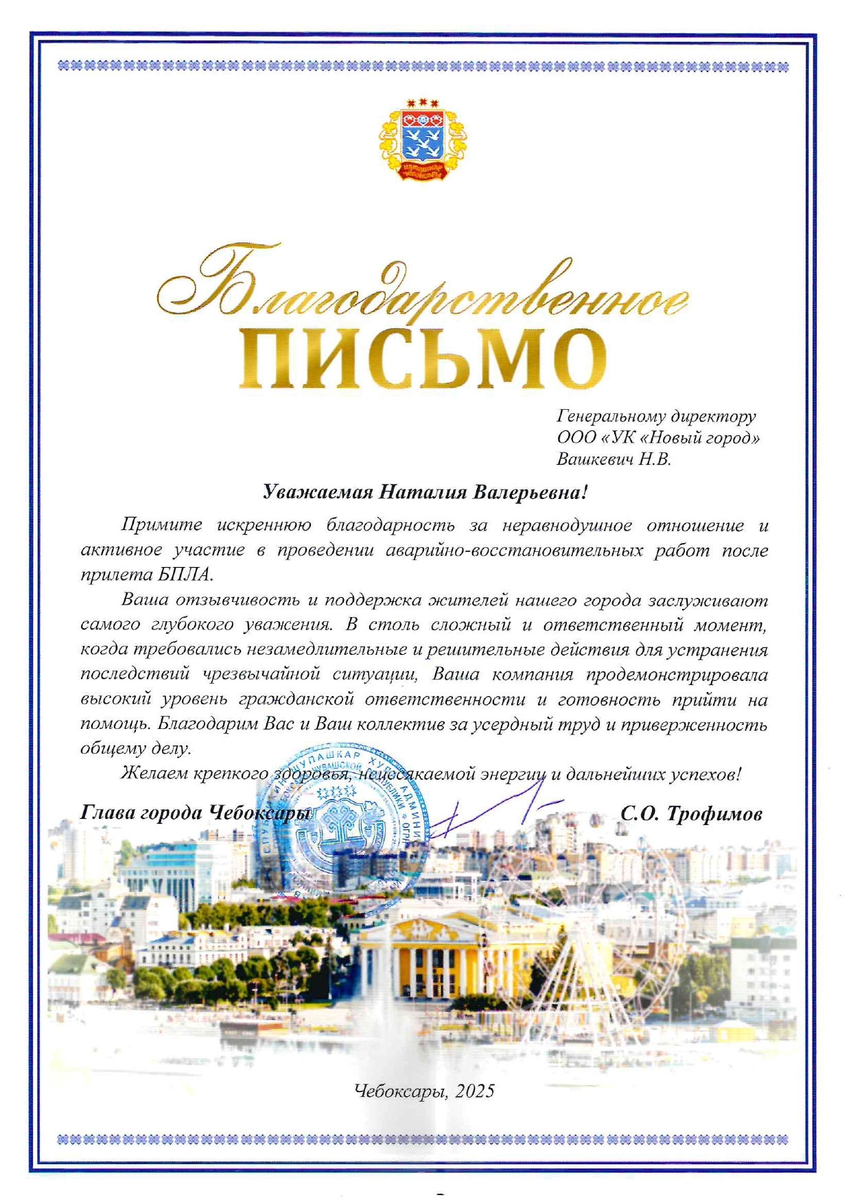 Всероссийский конкурс «Женщина-Директор года» в номинации «Оказание услуг по управлению и обслуживанию многоквартирных домов г. Чебоксары Чувашской Республики